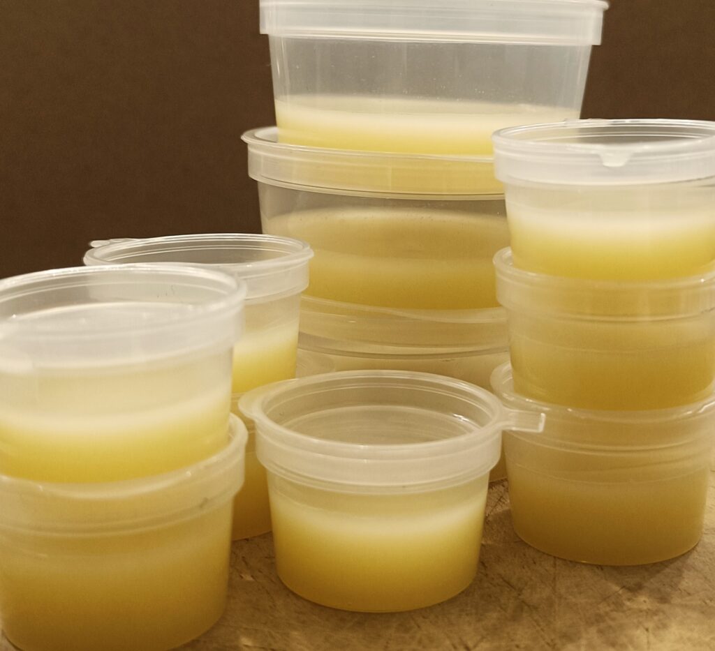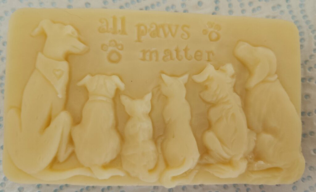 En als je dan toch lekker bezig bent, waarom dan ook niet nog iets anders proberen? Er was mij al een keer gevraagd of ik van bijenwas ook een balsem voor honden- en kattenpoten kan maken. Even bladeren in het receptenboek dat Google heet leverde een paar leuke recepten op. Die met onder andere calendula-olie en jojobaolie sprak mij het meest aan. Ook die had ik in een handomdraai gemaakt. En het ziet er nog leuk uit ook, al zeg ik het zelf.